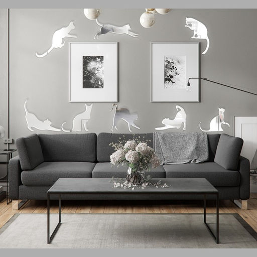 Наклейки интерьерные Котики, зеркальные, декор на стену, набор 8 шт.