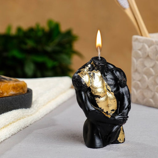 Цена за 2 шт. Свеча декоративная Мужской торс, чёрная с поталью, 9 см