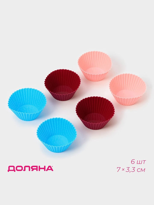 Формы для выпечки кексов Доляна Риб.Круг, силикон, 7?3.3 см, набор 6 шт., МИКС