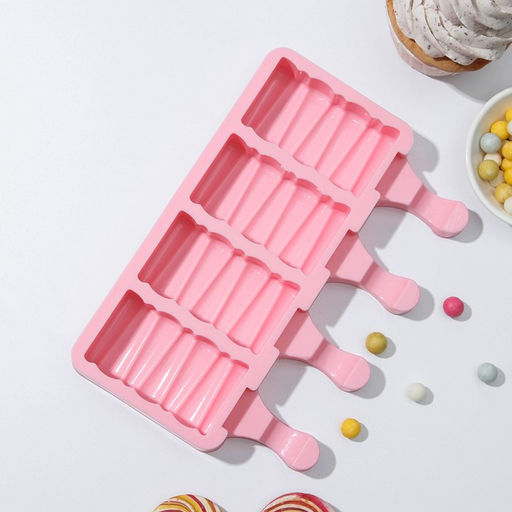 Форма для мороженого Венеция, силикон, 19.6?11?2.4 см, 4 ячейки, розовая