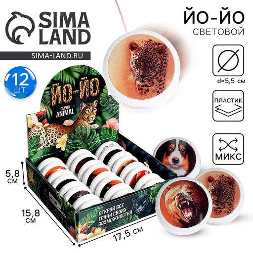 Цена за 12 шт. Йо-Йо Животные, световой, МИКС, в шоубоксе