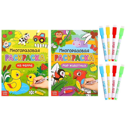 Раскраска многоразовая набор Рисуй-стирай. Мир животных 2 шт. по 12 стр.