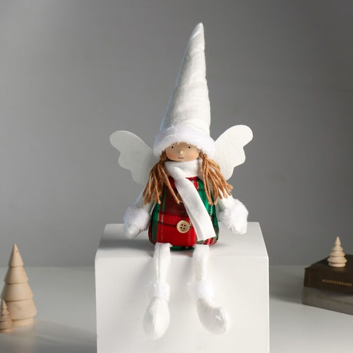 Интерьерная кукла текстильная Ангелочек в красно-зелёном сарафане, длинные ножки, 16?8?40 см