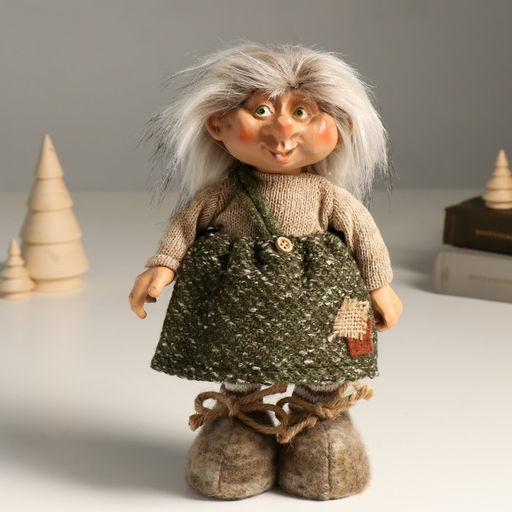 Интерьерная кукла текстильная Кикиморка в сарафане с заплаткой, 27.5 см