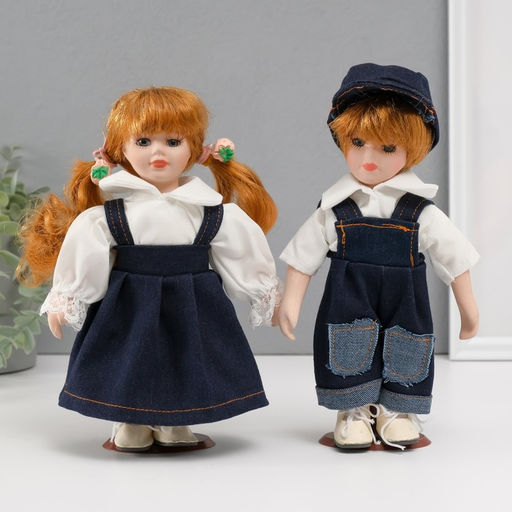 Набор кукол коллекционных Пара: Оля и Слава, джинсовый наряд, 2 шт., 19 см