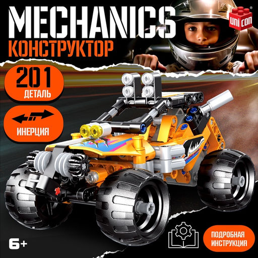 Конструктор гоночная машина Багги UNICON Техно, инерционный, 201 деталь, 6+