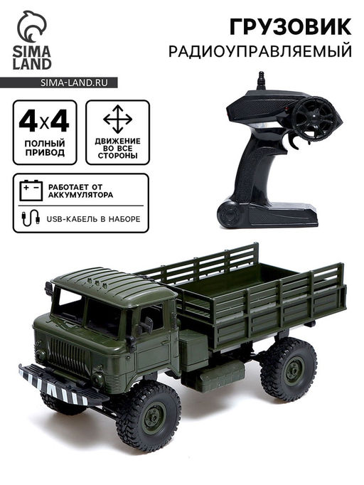 Грузовик радиоуправляемый Газон, полный привод 4WD, работает от аккумулятора, цвет зелёный
