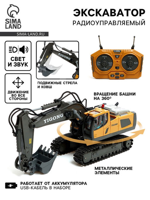 Экскаватор радиоуправляемый Стройка, металлический ковш, работает от аккумулятора
