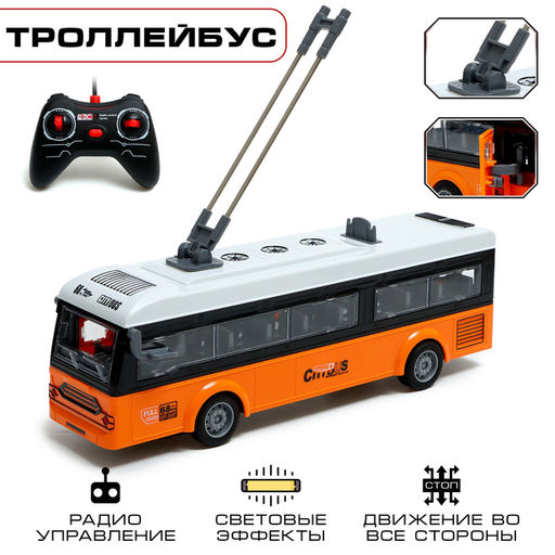 Троллейбус радиоуправляемый Город, открываются двери, световые эффекты, работает от батареек