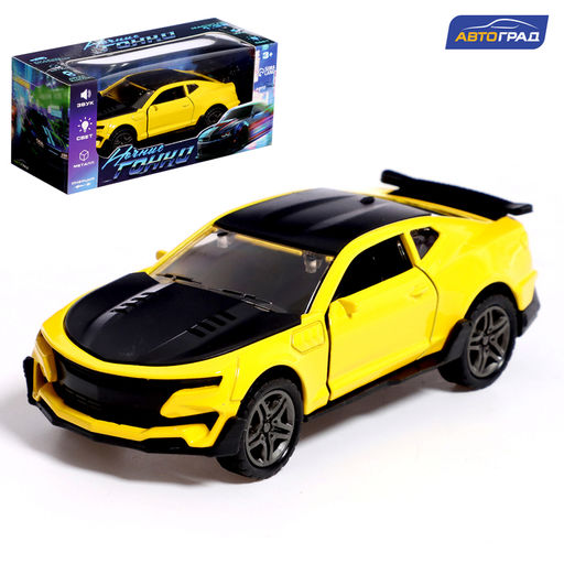 Машинка металлическая Ночные гонки, инерционная, 1:32, открываются двери, звуковые и световые эффекты, цвет жёлтый