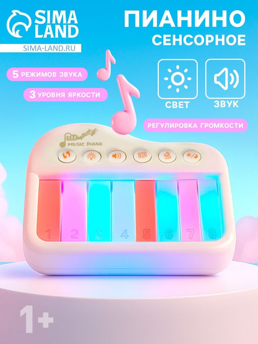 Музыкальное детское сенсорное пианино, звук, свет, белый