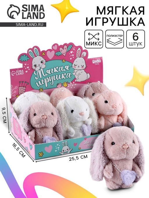 Цена за 6 шт. Мягкая игрушка в шоубоксе, зайка, микс