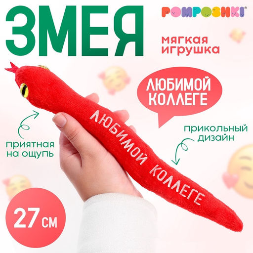 Мягкая игрушка Любимой коллеге, змея, красная, 27 см