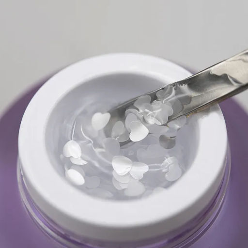 ROMANTIC GEL Single гель для дизайна - прозрачный гель с глянцевыми белыми сердцами