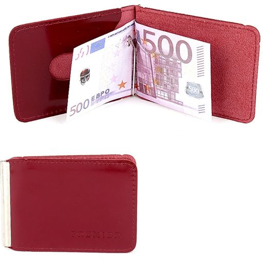Зажим для купюр Premier-Z-2 (карман д/мелочи на кноп) натуральная кожа красн.тем. гладкий (138) 157778