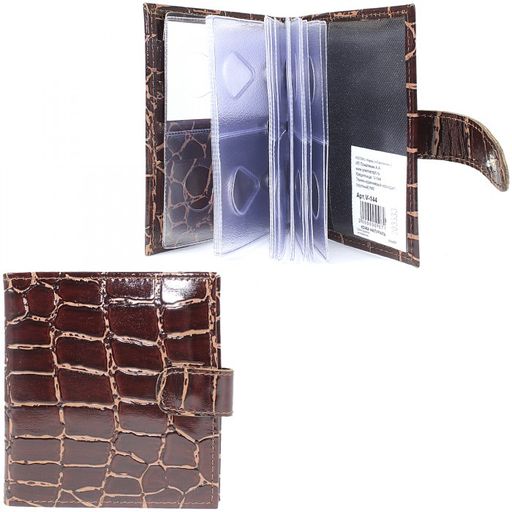 Кредитница Premier-V-144 (с хляст, 2х-рядная, 5внут карм, 32карточки) натуральная кожа коричневый крокодил крупный (3) 203333