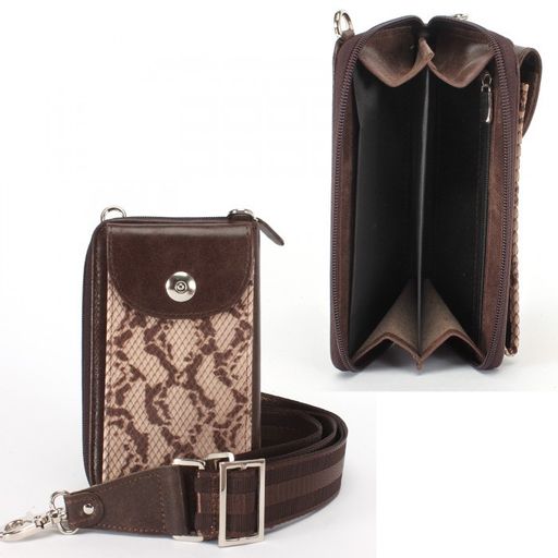 Портмоне/клатч жен Croco-1301 натуральная кожа 3 отд, 1 карм (рем-петля+плеч рем), бежевый питон/коричн. темный крек (501-225) 228585