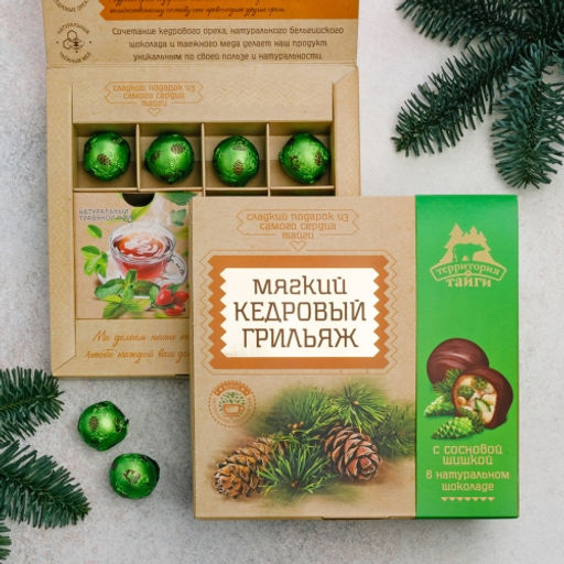Мягкий кедровый грильяж с сосновой шишкой в коробке 120гБОНУС (травяной чай в подарок)