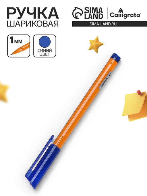 Цена за 100 шт. Ручка шариковая 1.0 мм, стержень синий, корпус жёлтый треугольный, колпачок синий