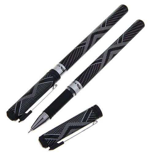 Цена за 12 шт. Ручка гелевая, 0.5 мм, чёрный, корпус серебристый с рисунком