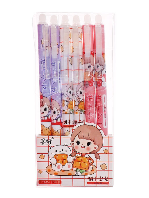 Цена за 6 шт. Ручка гелевая автоматические стираемые чернила, 0.5 мм, стержень синий, грип, Милашка, МИКС