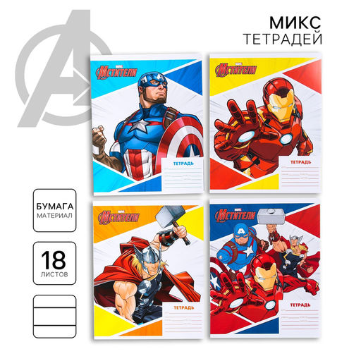 Цена за 20 шт. Тетрадь 18 листов, в линейку, МИКС 4 видов, обложка мелованная бумага, Мстители