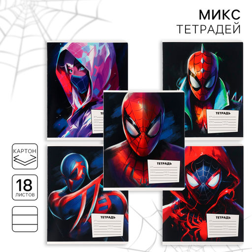 Цена за 20 шт. Тетрадь в линейку 18 листов, 5 видов МИКС, обложка мелованный картон, Человек-паук