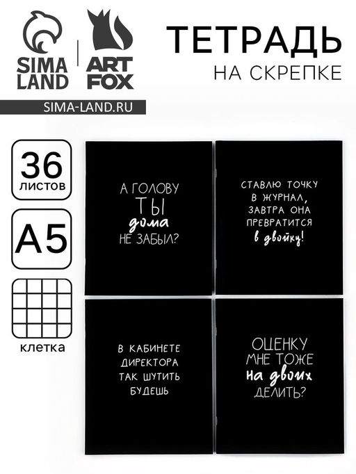Цена за 4 шт. Тетрадь в клетку, 36 л., А5, на скрепке, блок №1 Черные тетради МИКС