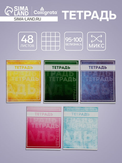 Цена за 10 шт. Тетрадь, 48 листов в клетку, Calligrata Фактура-2, МИКС