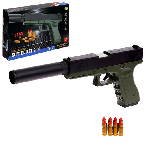 Пистолет Глок, с гильзами, глушителем, стреляет мягкими пулями