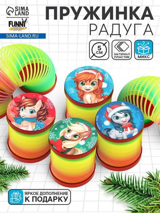 Пружинка радуга Новогодняя лошадь, d=5 см, МИКС