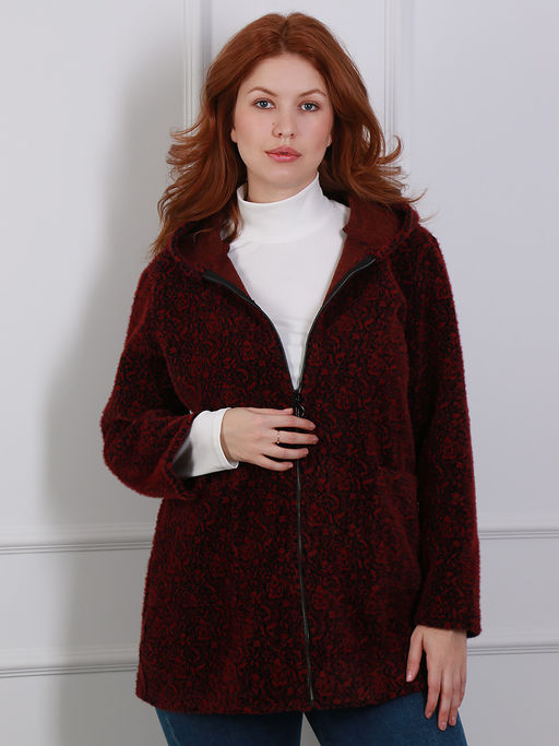 Кардиган женский бордовый с капюшоном