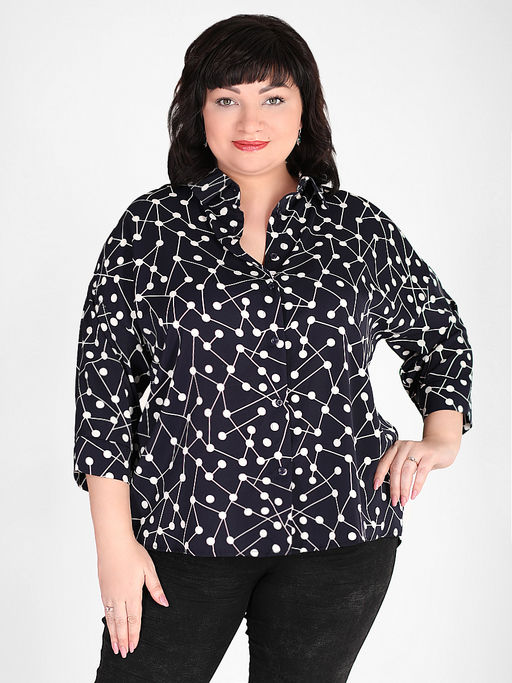 Рубашка темно-синяя в деловом стиле с рисунком