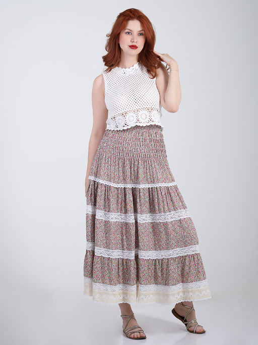 Юбка ярусная с натуральным кружевом