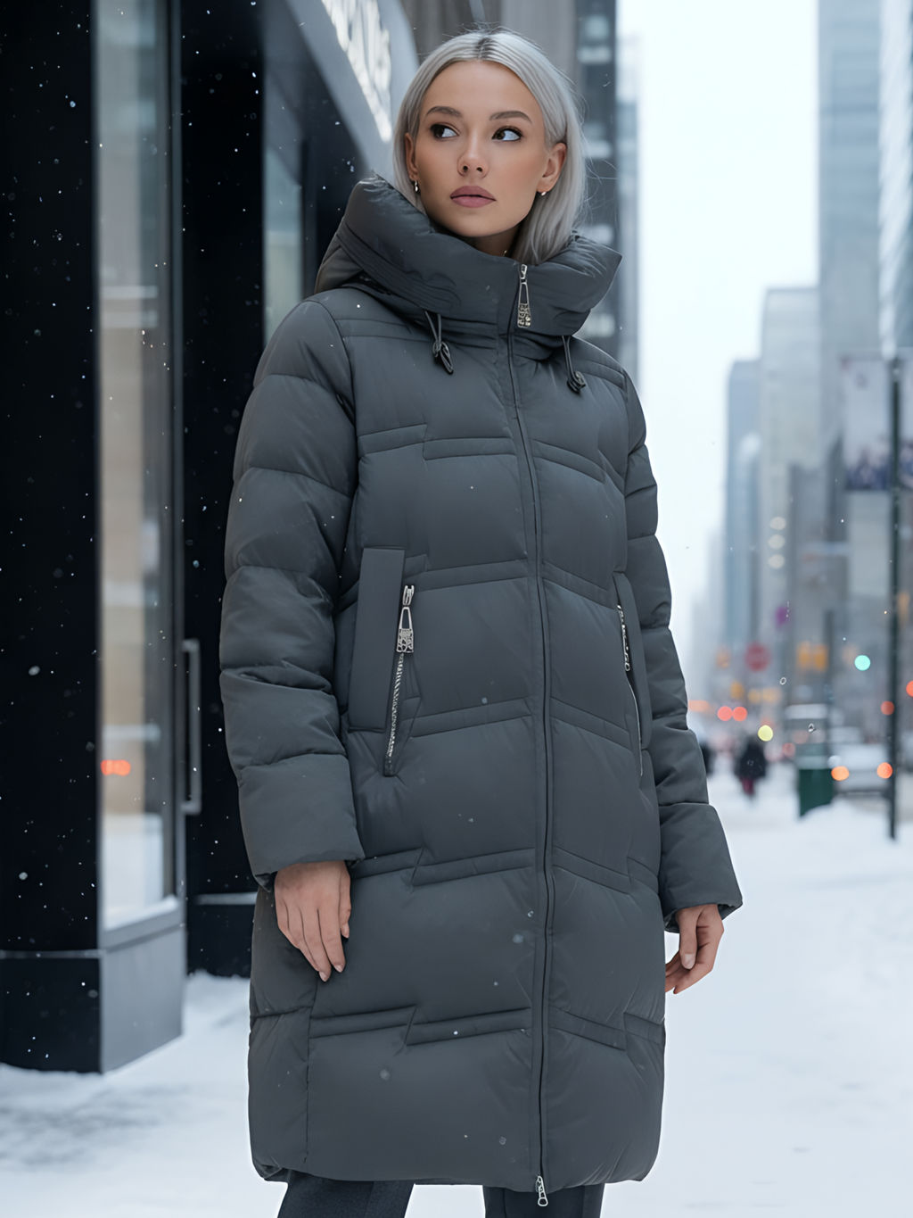 Пальто зимнее утепленное с капюшоном женское темно-зеленого цвета 7779TZ