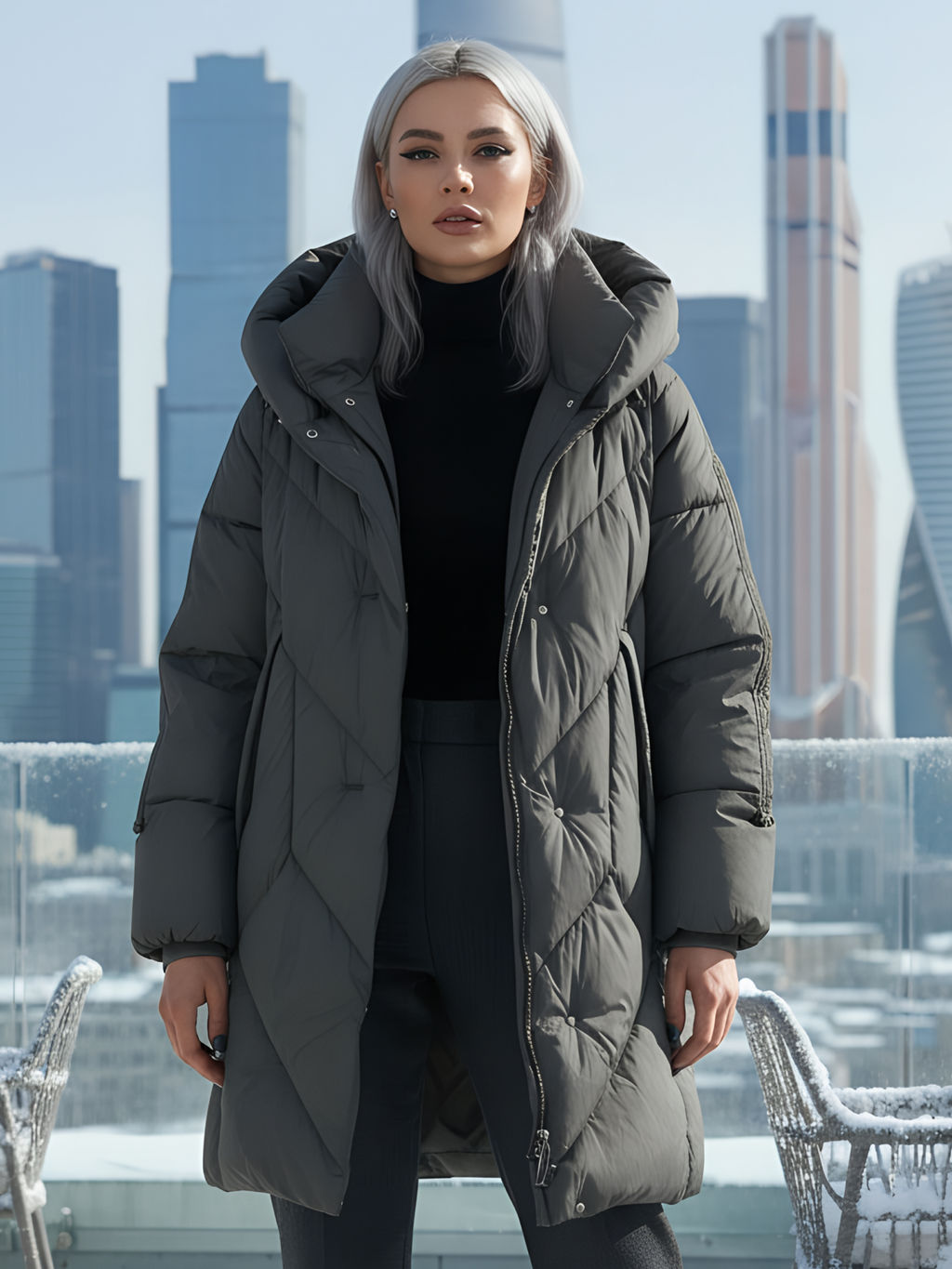 Пальто двубортная зимнее утепленное женское зеленого цвета 7732Z