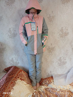 Горнолыжный костюм женский зимний персикового цвета 0709_1P