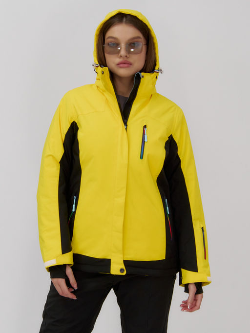 Горнолыжная куртка женская зимняя желтого цвета 027J