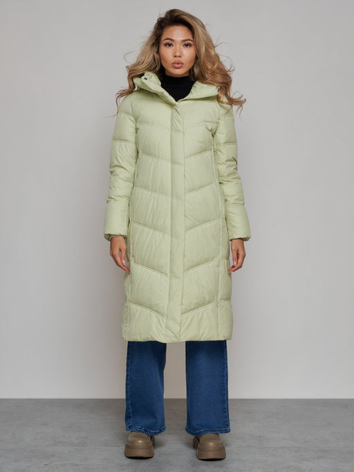 Пальто утепленное молодежное зимнее женское светло-зеленого цвета 52325ZS