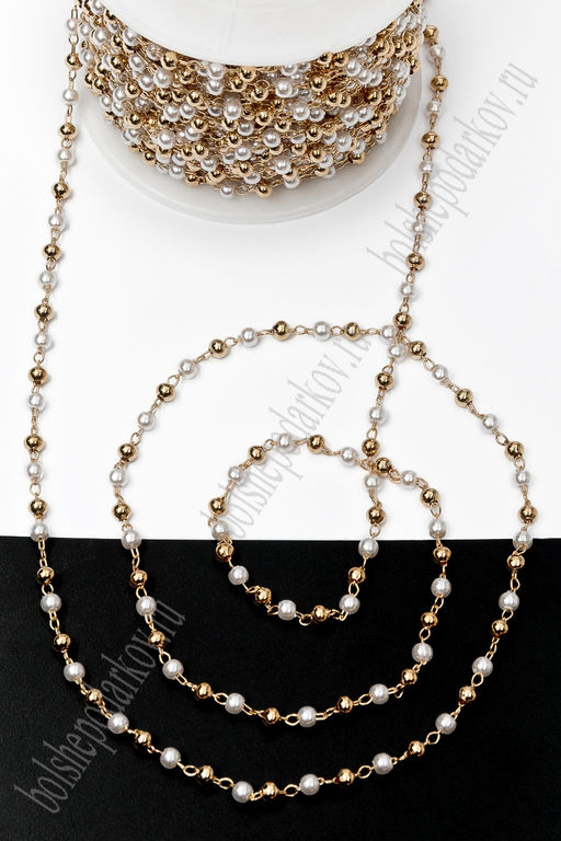 Цепь декоративная с бусинами №2, 2*2 мм (15 м) SF-7368, золото