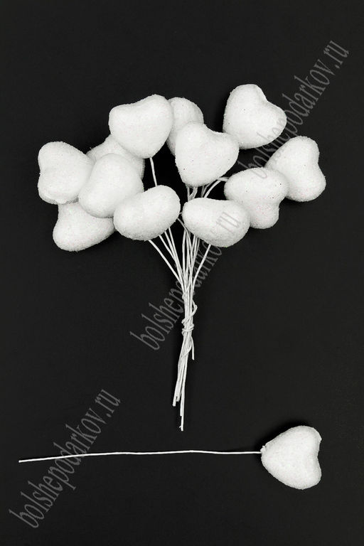 Декоративная веточка "Сердечко" 2 см (72 шт) SF-7561, белый