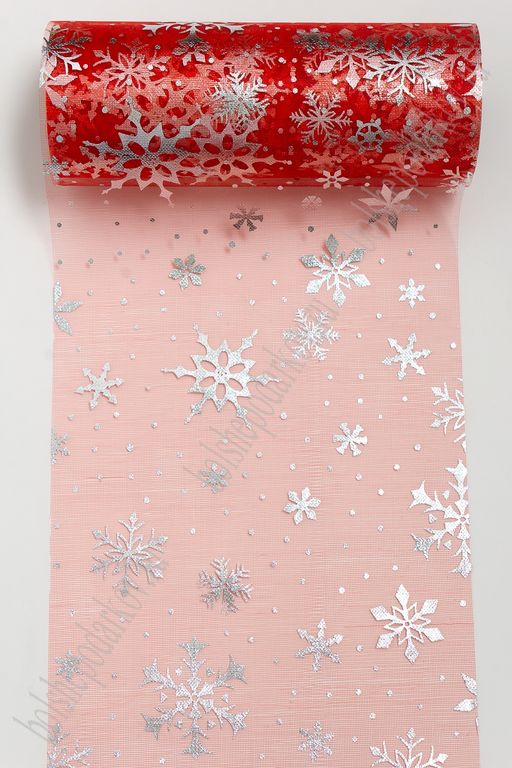 Фатин "Снежинки" 15 см*15 ярд (SF-3776) красный/серебро