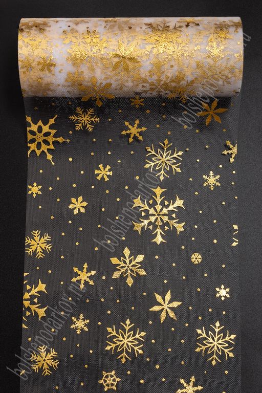 Фатин "Снежинки" 15 см*15 ярд (SF-3776) белый/золото