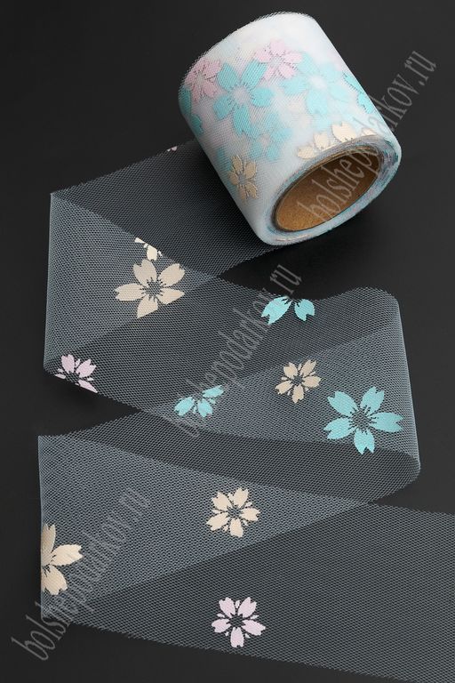 Фатин Цветочки 5,5 см*15 ярд (SF-6042) белый №1А