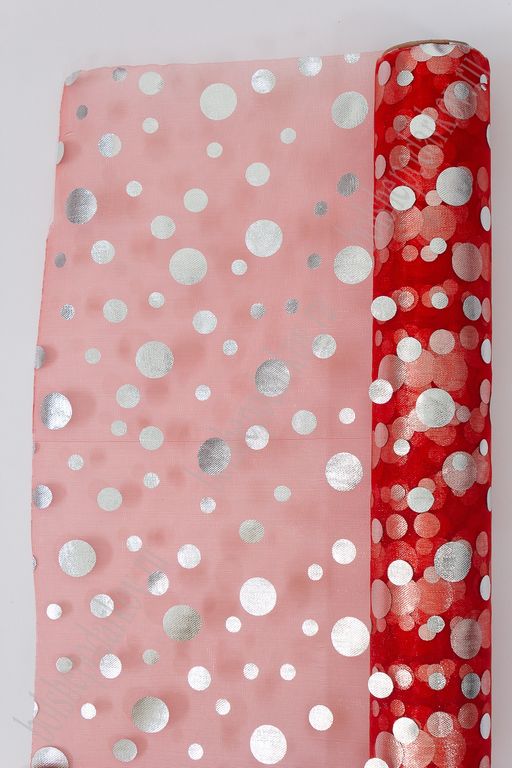 Органза 48 см*5 ярд "Кружочки" (SF-3132) серебряный/красный