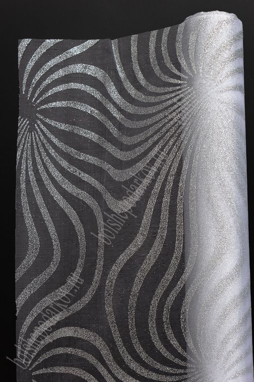 Органза 48 см*5 ярд "Узоры с глиттером" (SF-769-2) серебряный