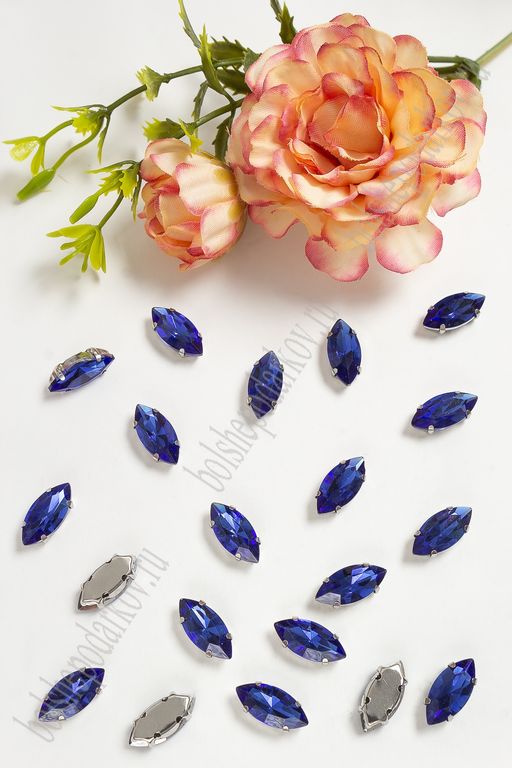 Стразы пришивные 15 мм "Овал заостренный" (20 шт) SF-3713, синий №9