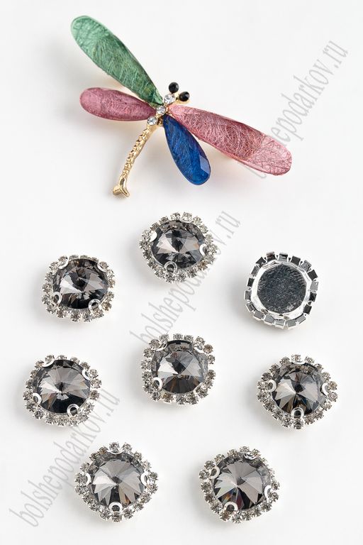 Стразы пришивные в серебряной оправе 18 мм "Круг" (5 шт) SF-2051, графитовый №2