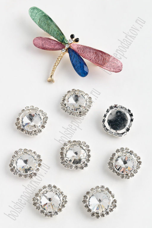 Стразы пришивные в серебряной оправе 18 мм "Круг" (5 шт) SF-2051, серебро №1