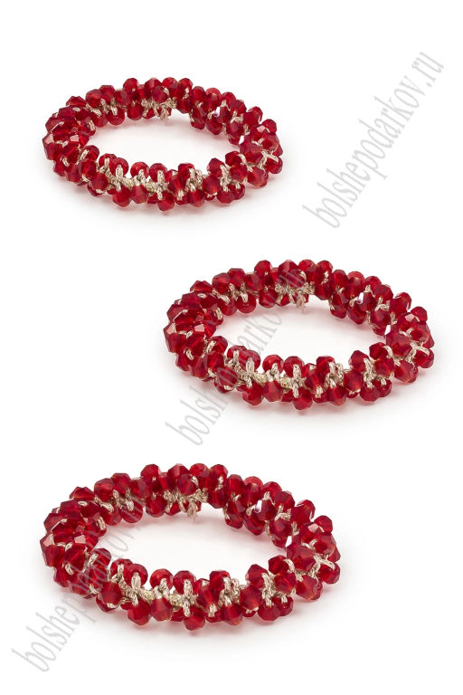 Резинки с бусинами для волос 5 см (3 шт) SF-8011, красный
